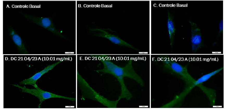 Evaluation of β-catenin synthesis, a key signaling transducer for hair fiber production, associated with hair growth and the prolongation of the anagen phase (growth phase during which hair fibers are produced).